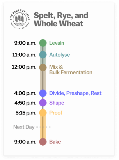 Spelt, Rye, and Whole Wheat Sourdough Bread Method