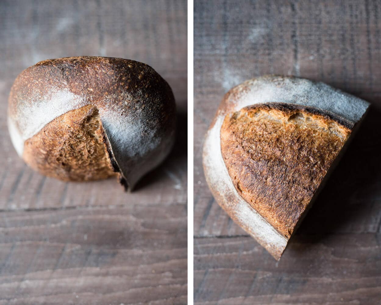 One modification I’d love to try is to use white wheat instead of red wheat for the 50% whole wheat portion. White wheat is one of my favorites to use, mainly because of its mild, laid-back flavor, but also I conveniently have a new 25-pound bag of raw white wheat berries sitting in my pantry ready to go (and nowadays it’s almost always used in my weekly sourdough sandwich bread). This change might reduce this bread’s overall assertiveness, but it would be exciting to see the flavor profile difference.