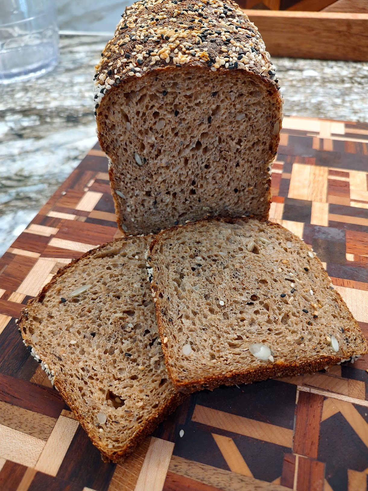 By: Sabine Walter https://www.theperfectloaf.com/high-fiber-sourdough-bread-recipe/comment-page-3/#comment-45091 Mon, 18 Aug 2025 15:59:41 +0000 https://www.theperfectloaf.com/?p=18097#comment-45091 I made this bread yesterday and we had it for breakfast this morning. Wow! That is really good. I will definitely add this to my "repeat" list. I used beer in the main dough, added 8 g psyllium seeds to the seed & oat soaker, and substituted barley malt for the honey. Oh, and I added 20g of sprouted barley to the levain. The flavor explosion was awesome! Mine is probably not as soft and fluffy as yours, because I used freshly milled for the wholegrain. I made a mix of hard red & white wheat, spelt & a tad of rye and the tangzhong was made with hard red wheat. I did leave out the extra wheat bran since it's already in there when I use freshly milled. The white flours were Expresso bread flour from Cairnsprings Mills and King Arther bread flour and a bit of All purpose flour. I added teff seed to the outside with the sesame seeds; the sesame fell mostly off but the teff stayed! Definitely a yummy bread. The tummy is happy now. Thanks for sharing! https://uploads.disquscdn.com/images/c18b6faf39c25e33423e728c2c1f45047d770be3ffae68f24213e7c9d09794d1.jpg