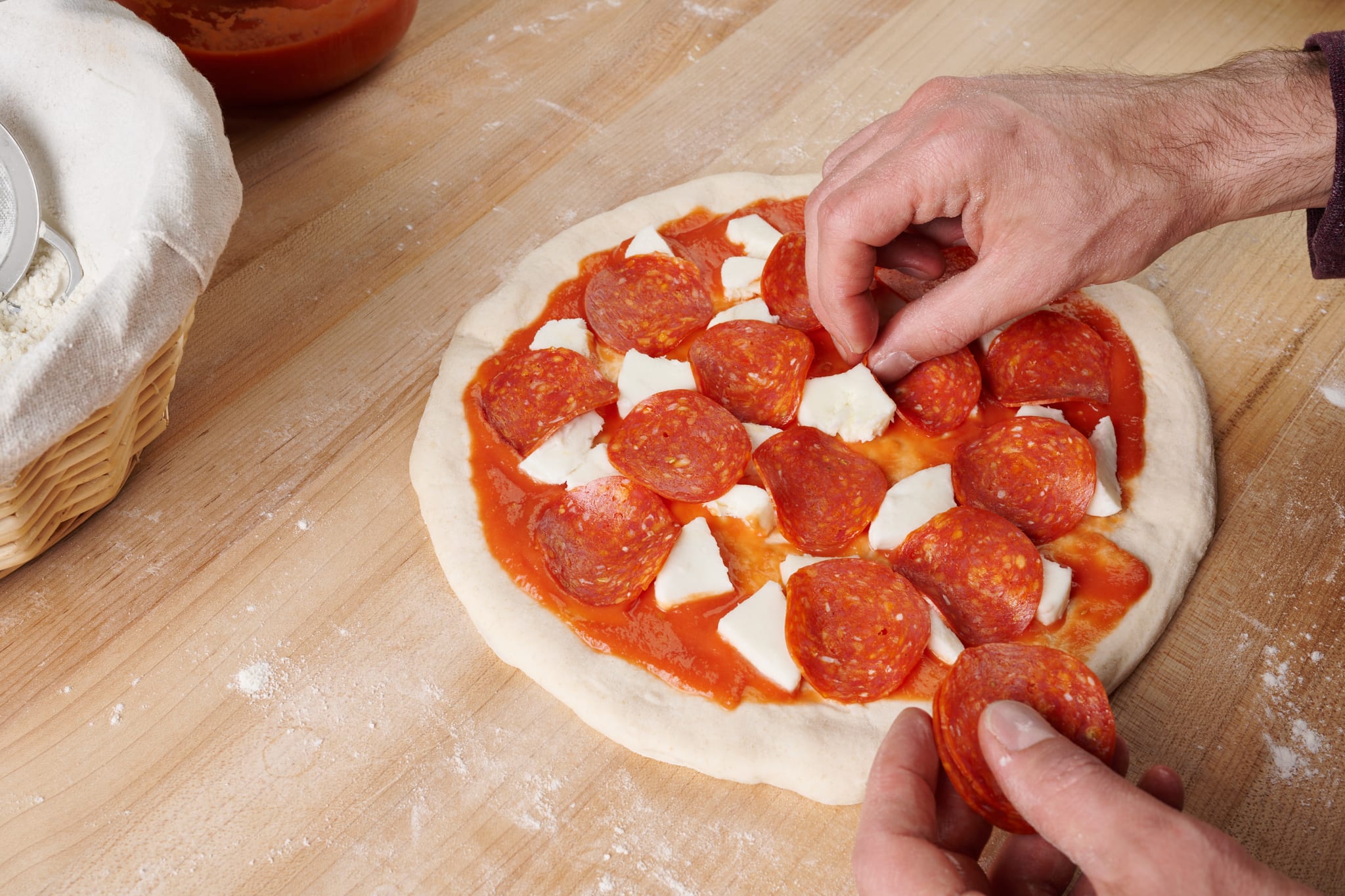 See my guide to balling and stretching pizza dough for a deeper look at these steps of the process →