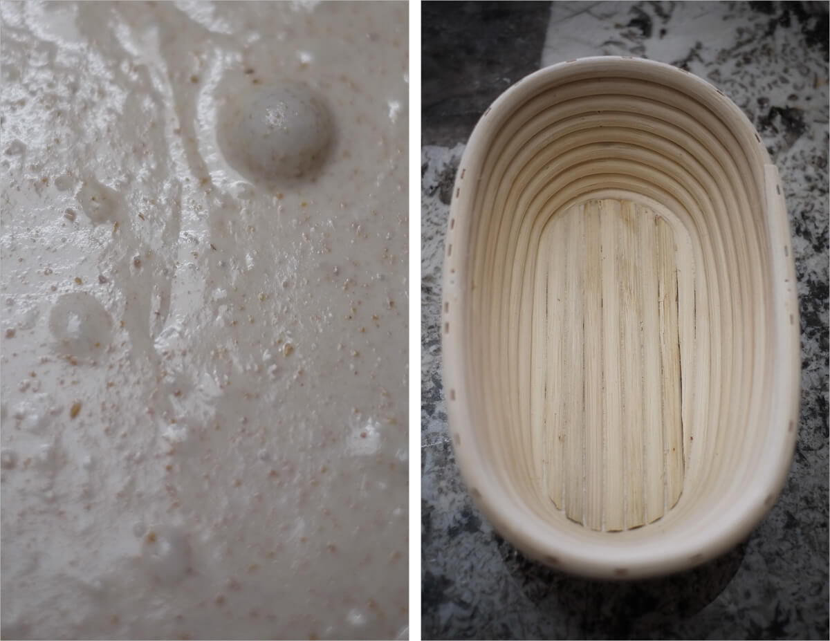 As mentioned in my whole wheat post increasing your autolyse time will change the way your dough feels when you start to mix as you’ll notice it has elasticity and strength early on even before intensive mixing/kneading. It starts the gluten formation process early and begins to smooth the dough, but it also helps bread with a higher percentage of whole grain to fully hydrate before fermentation begins.
