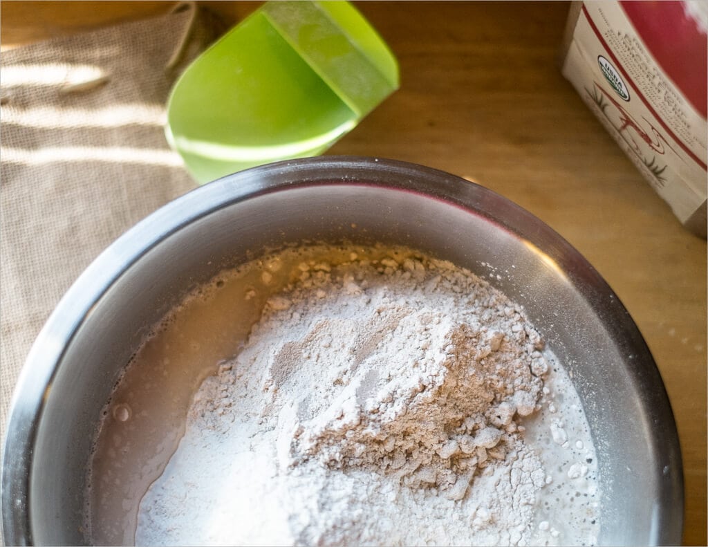 The night before, when your sourdough starter is at a nice and ripe stage, mix the following and set out on the counter overnight.