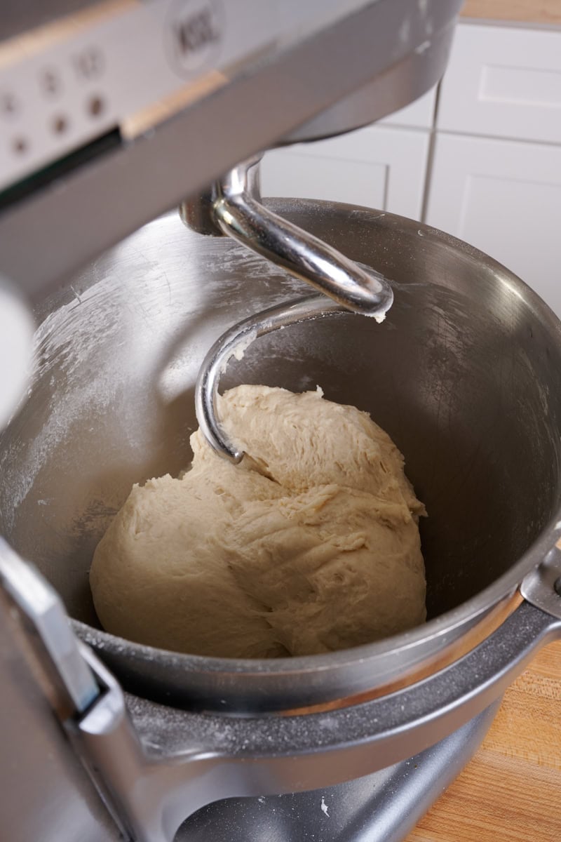 I used my KitchenAid stand mixer or a spiral mixer to efficiently mix and knead the dough. However, it’s also possible to mix this dough by hand using the slap and fold kneading technique. Just be sure to hold back the butter until the dough is significantly strengthened, smooth, and elastic.