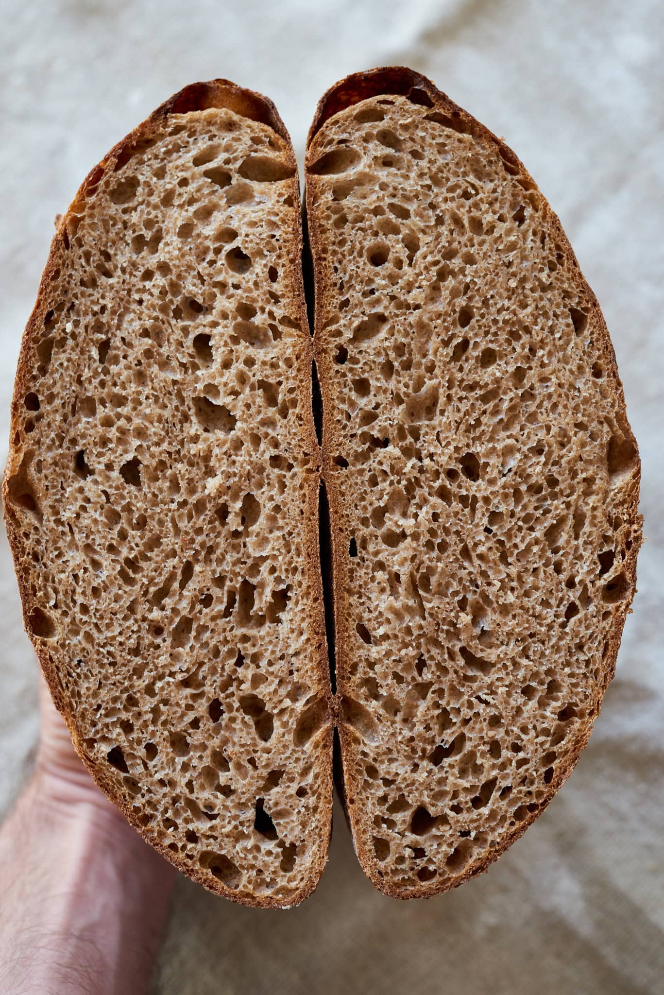 Sourdough bread made with 100% whole-grain wheat flour. With a robust and Earthy flavor, this is nourishing and wholesome bread.