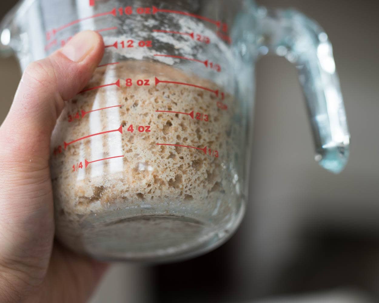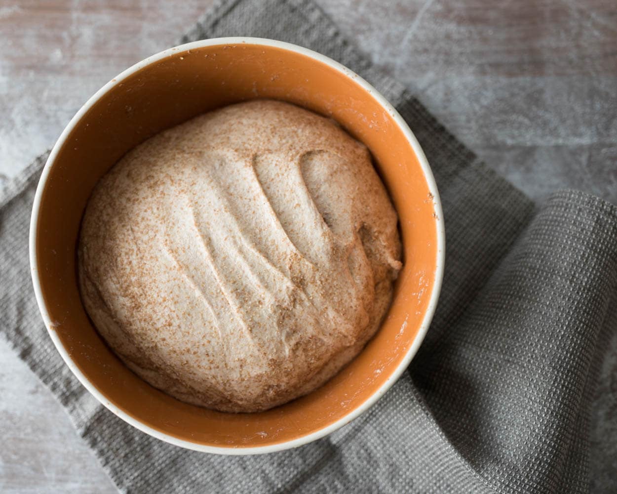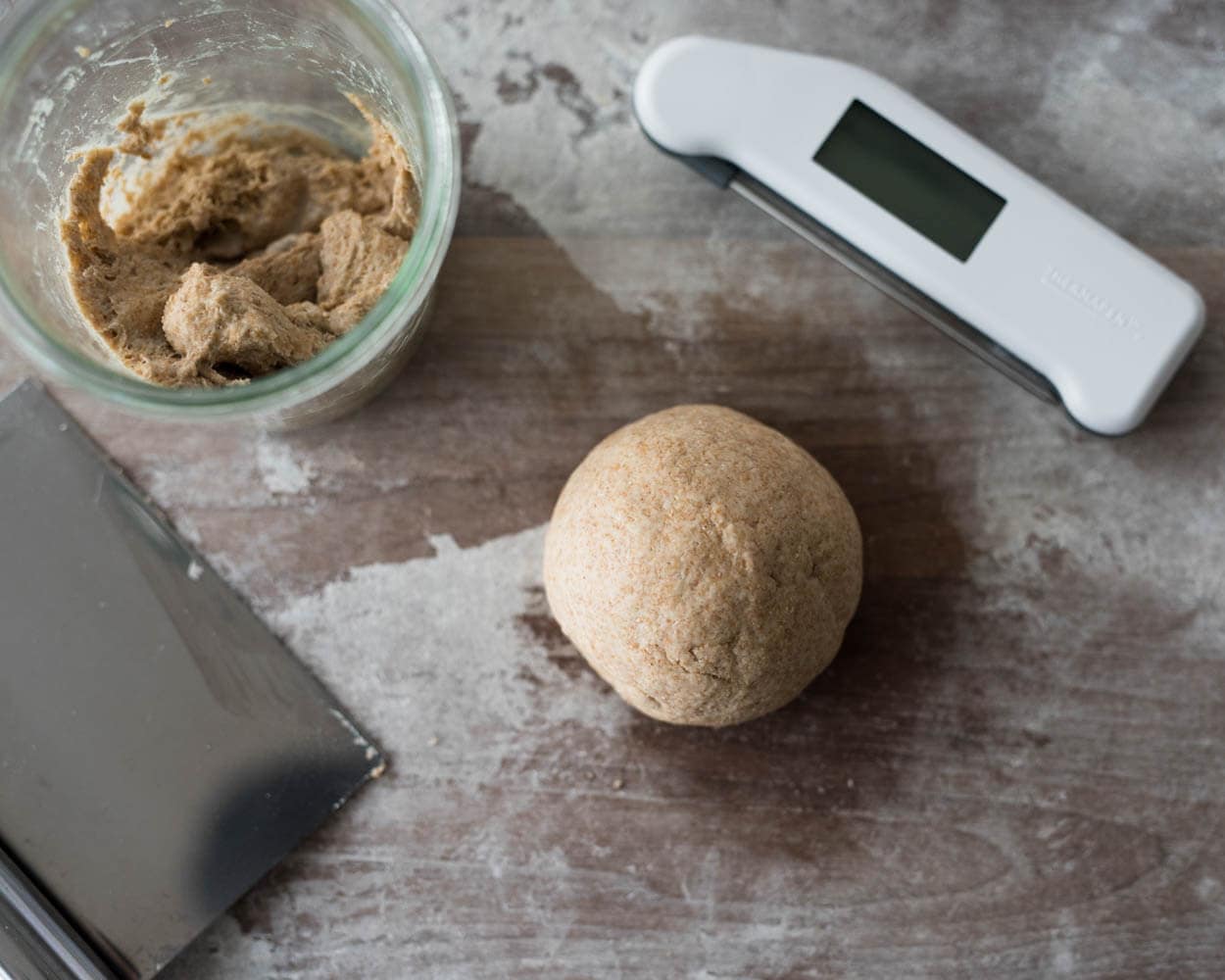 Due to the nature of whole wheat flour and the high level of nutrients available for your starter or levain, dough fermentation will be vigorous. Keep an eye on your dough during bulk fermentation, especially if it’s warm in your kitchen, and divide the dough when it looks ready (more on this later).
